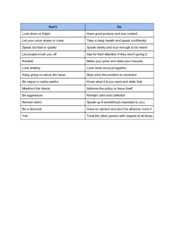 - Giving yourself a pep talk may sound silly but it can help to boost your confidence and express what you need to in a confident and succinct manner.