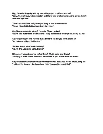 3Keep any communication as short as possible. When forced to communicate with the person, use “no” as a complete sentence if they ask if they can call you, if they can explain things, and so on. Tell them your boundaries clearly so they understand that you don't want to get more involved.[3] Otherwise, give short, direct replies such as “I can’t,” “That isn’t possible,” or “I don't have time for that.” Then walk away, hang up, etc.[4]