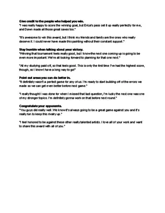 - Keep in mind that if you are gracious when others win, they are more likely to follow your lead and behave similarly when they lose.