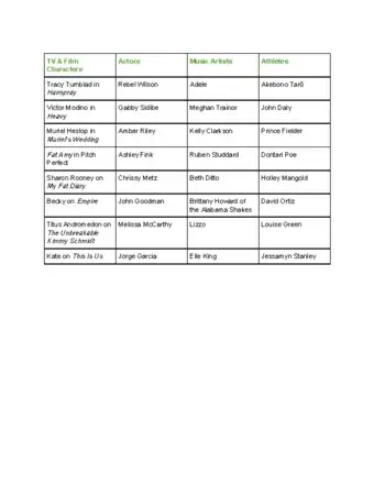 - The actors and actresses who play these characters can also be good examples of how to be confident when you’re an overweight adult.