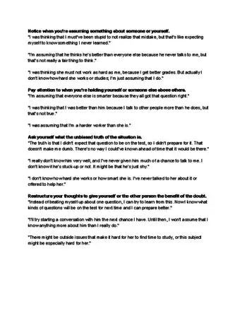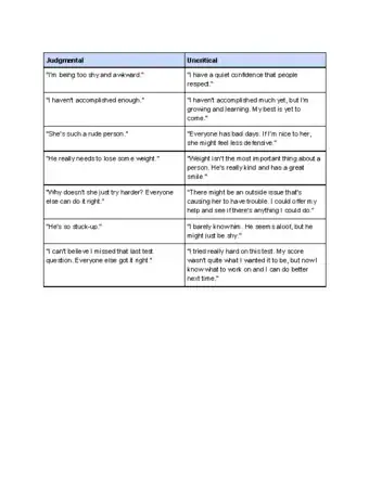 - For example, you might catch yourself thinking, “That girl needs to lose some weight.” Challenge that thought, asking yourself why it’s your business. Then say something nice that you noticed, such as, “You have a beautiful smile!”