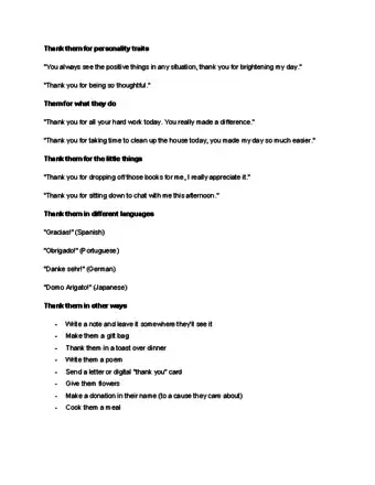 6Take the time to say “thank you”. Think of all the things the other person does for you or the ways they improve your life. Look them in the eyes and express your appreciation in a few sentences. You want them to know exactly how much you love and appreciate them and everything they do.