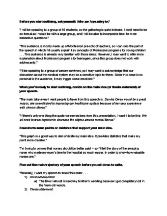 - After you have a basic outline, you can make notes about what you want to say under each bullet point.