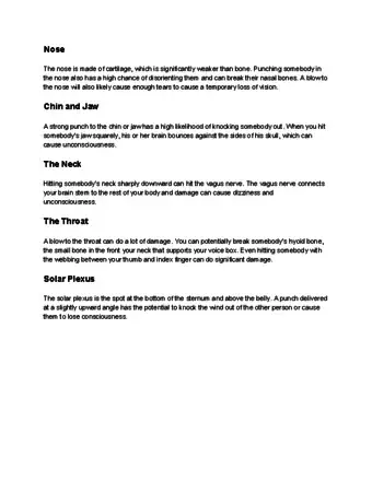 • An uppercut to the jaw under the chin will twist the head quickly, potentially causing a loss of consciousness.