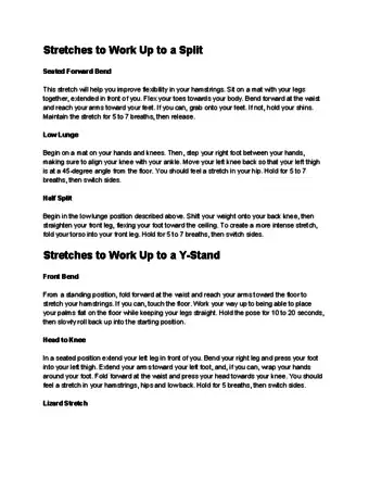 - Use your hands for support as you continue to inch your legs in opposite directions until your pelvis reaches the mat and you are in the full splits. Extend your hands and face forward. Breathe in this position for six to eight breaths.