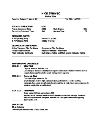 1Apply to airlines as soon as you meet the minimum requirements. Prepare a one-page professional pilot resume. The resume should be broken down into sections with your contact information, ratings and flight hours, experience and chronological job history and any awards or accomplishments.