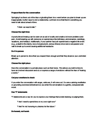- You may want to send an e-mail or text message to your partner asking to talk prior to getting together. This will give them ample time to emotionally prepare for a serious conversation. You do not want to break up with the person through text, but let them know a serious conversation will happen in the near future.