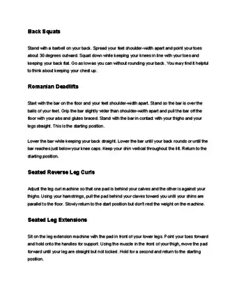 1Practice with light weights first. Using the wrong form or overexerting yourself can cause knee injury, spinal compression, and back injury. Always practice the proper technique for each exercise with light weights first. Move on to a more challenging weight only when you have perfected the proper form.