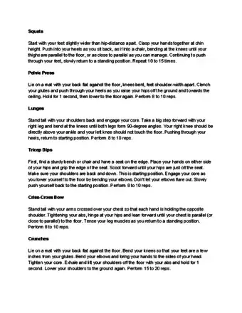 - A beginner can start with eight to twelve repetitions of the exercise moves mentioned below. These exercises target the major muscle groups.