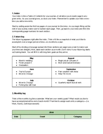 - Write page numbers on the corners of each page. As your future log is your first section, the page numbers should be one and two. Flip back to your index and write something like, "Future Log . . . 1-2."