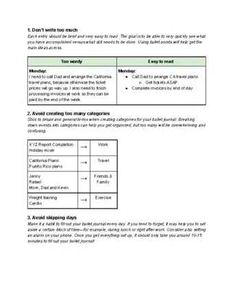 - A bullet journal is meant to be brief, so use short, simple sentences. For example, do not say, "Today, I called the vet to discuss the cat's vaccinations, including the rabies vaccines that is due." Instead, simply write, "Called vet to ask about cat's vaccinations. Rabies due."