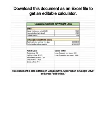 To calculate how many calories you need to eat to lose weight, calculate your basal metabolic rate, which tells you how many daily calories you need to keep your body functioning. Next, multiply your BMR by the activity factor representing the number of daily calories you burn through activity. To lose 1 pound of fat each week, you need a deficit of 3,500 calories over the course of a week. Use your updated BMR to figure out how many daily calories you need to cut to achieve a 3,500 weekly deficit! For tips on tracking your caloric intake each day, read on!