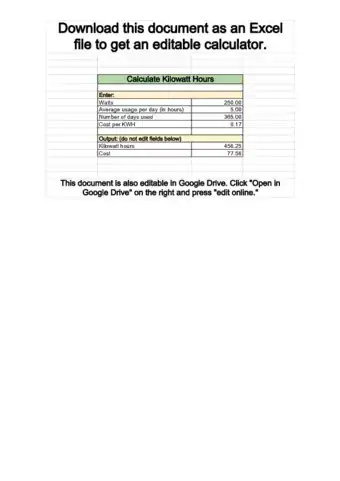 - Example: 0.39 kilowatt hours / day x 31 days = 12.09 kilowatt hours.