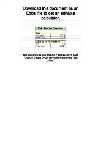 1Divide your overhead costs by your labor costs to see how efficiently you use your resources. Multiply this by 100 to get the percentage of overhead used by each worker.