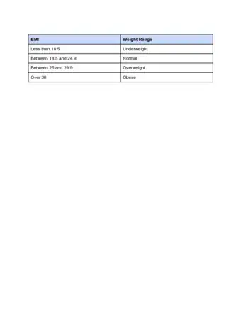 - A BMI below 18.5 means that you are underweight.