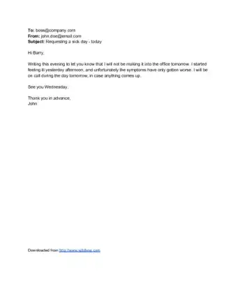 Sample Email In Sick Template