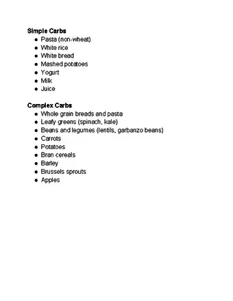 4Add simple carbs into your diet on day 2. Over the course of the second day of carb loading, start to switch over from complex to simple carbs. The body can break down simple carbs, such as milk products or fruits, quickly for immediate fuel. Do your best to avoid simple carb foods with lots of saturated fats, like cookies, or you might feel sluggish on race day.[5]