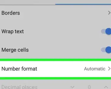 Format Cells on Google Sheets on Android