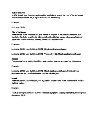 - Example: Lexicomp (2018). Lexi-CLINICAL SUITE [Mobile application software].