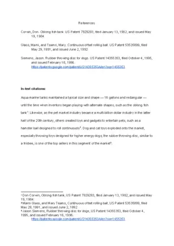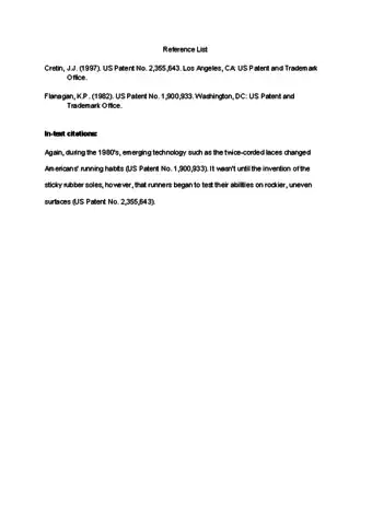 - For example: "Porath, Deanna F. Pedal operated mower. U.S. Patent 4455816, filed June 29, 1982,"