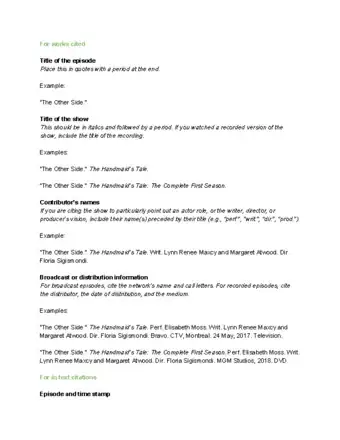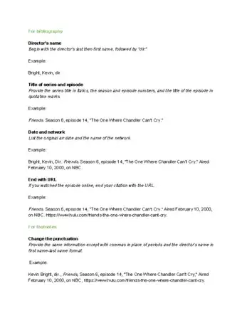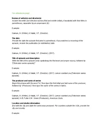 - ↑ https://librarybestbets.fairfield.edu/citationguides/chicagonotes-bibliography#TelevisionEpisode