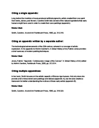 - Single author example: Lane, Lois. Appendix to Serially Saved by Superman: My Work with Clark Kent, pp. 512-514.