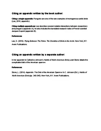 - Some books have multiple appendixes. In that case, specify which appendix you're referencing with the same label used in the book (typically a capital letter). For example: (Lane, appendix A).