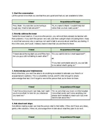 • Don't force someone to talk if they don't want to. They have to be ready to open up to someone first.