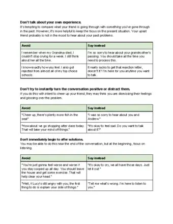 • For instance, try not to say things like, "Well, at least you're still alive," "It isn't all bad," or "Cheer up!"