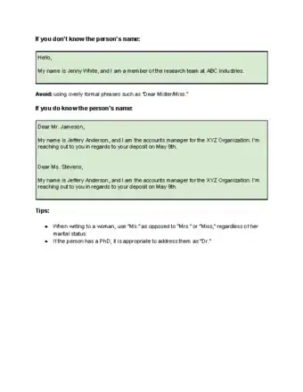 3Decide how to address the recipient. This can be tricky if you're emailing a stranger, as you may not know their preferred name. There are a few etiquette guidelines, however, that can help you avoid missteps.