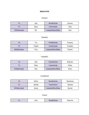 - ↑ http://www.spanishdict.com/conjugate/ser