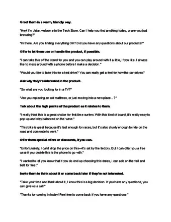 5Explain why customers should buy the item today. Customers often feel unsure and come up with reasons to avoid making a purchase. Read your product and benefit descriptions again, then think of reasons why you would pass on a purchase. If you can explain why these objections aren’t meaningful, you can convince a reluctant customer to make a purchase.[8]