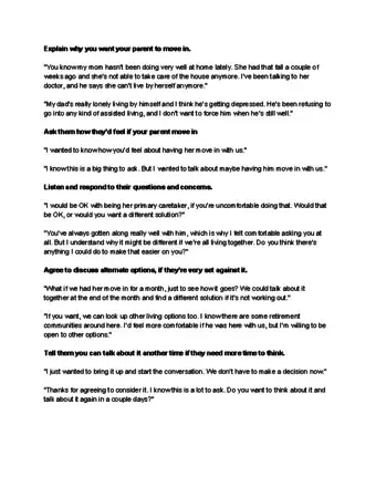 - If your spouse says, “I think hiring someone to stay with your mom might be a better option than having your mom come to stay with us,” then say, “In what ways would that be better for you?”