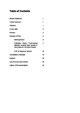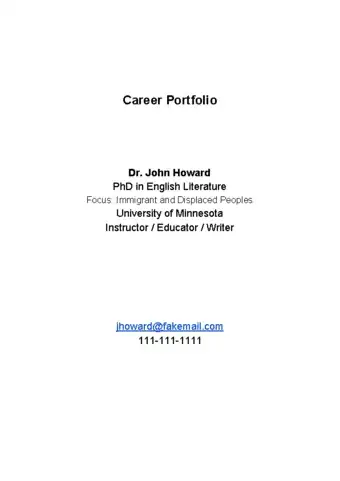 3Start with a title page and table of contents. Your title page should have basic information about you, including your name and contact information. Your table of contents sets out the sections of your portfolio and the types of documents included in each section, for quick reference.[10]