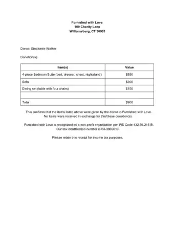 Sample Donation Receipts