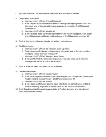 - Specific events you want to record as they occur - arrange travel to and from these events, buy tickets if necessary, and get permission from the event's planners to be able to shoot at the event.