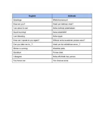 • For example, in the fictional Sindarian language, “Him” is translated to “Hon.” In Dothraki, “She” is translated to “Anna.” In Valyrian, “to go” is translated to “naejot jikagon.”