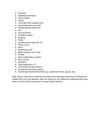 - Scavenger hunt list