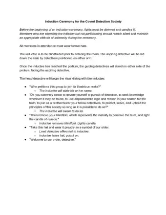 LibraryMouseCommunity AnswerAfter the inductees recite an oath, have the leader of the group light candles for the people being inducted. Wrap the bottoms of the candles in tinfoil so wax doesn't get on people's hands. -