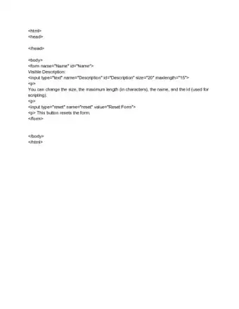 - Between the two body tags, (<body> and </body>), type: <form name="test">.