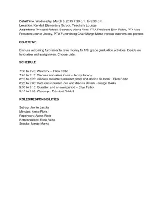 - For example, a brainstorming meeting might spend more time on generating ideas from the attendees, while a review-based meeting might focus more on critical decisions.