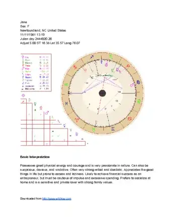 - On cafeastrology.com, you can find a long, detailed explanation of your chart under the section titled "Natal Chart Report" near the bottom of the page.