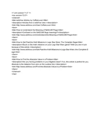 1Compile a list of your content. In a word processing program, create a simple list of your most recent content. Aim for 10-15 items, though you can make the feed with less or more. Copy the URL into the list, write the title and a short description, and write down the publish date.
