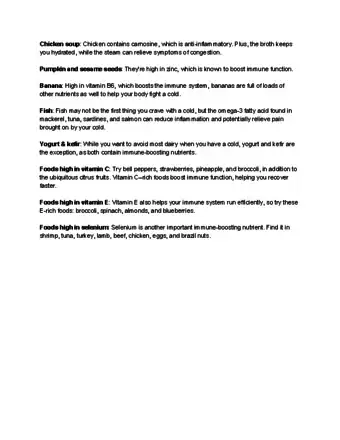Chicken soup, which may limit the production of some white blood cells that contribute to cold symptoms. It’s also comforting and tasty.[21]