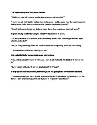 - For example, if you don’t want them touching you, you might tell them, “Would you mind not tapping or grabbing me when you want my attention? How about you knock on my desk if you need me.” Ignore any future touching.