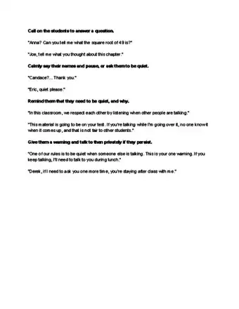 - Keep your focus on the main issue at hand, such as your need for everyone’s attention so that you can teach. Don’t get distracted by other issues, such as the student’s tone or the excuses the student gives for talking.