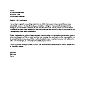 - Say something short that communicates your frustration, like: "Please stop and let me work" or "Stop talking please." This will help you to stand up to the behavior and give you ammunition for your report if the behavior continues.