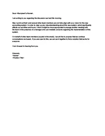 5Set up a meeting with your supervisor or HR representative. Bring your written evidence, your witnesses, and present your case as calmly as you can. Practice what you're going to say before you get in there and have to say it. Keep your complaint short and sweet, and fill out any documentation paperwork provided for you by your superiors.[11]