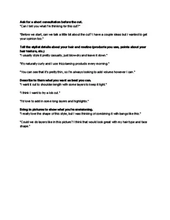 - Having this conversation will help to avoid any surprises if the cut doesn’t look exactly the same on you as it did on the person in the picture.