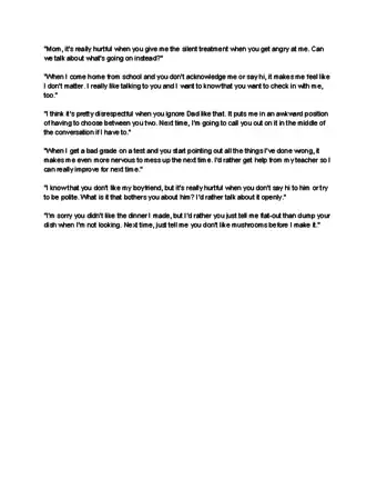 - For instance, you might say, “I feel neglected and ignored when you act like I'm not in the house. I'd like us to discuss problems head-on instead of just ignoring one another.”